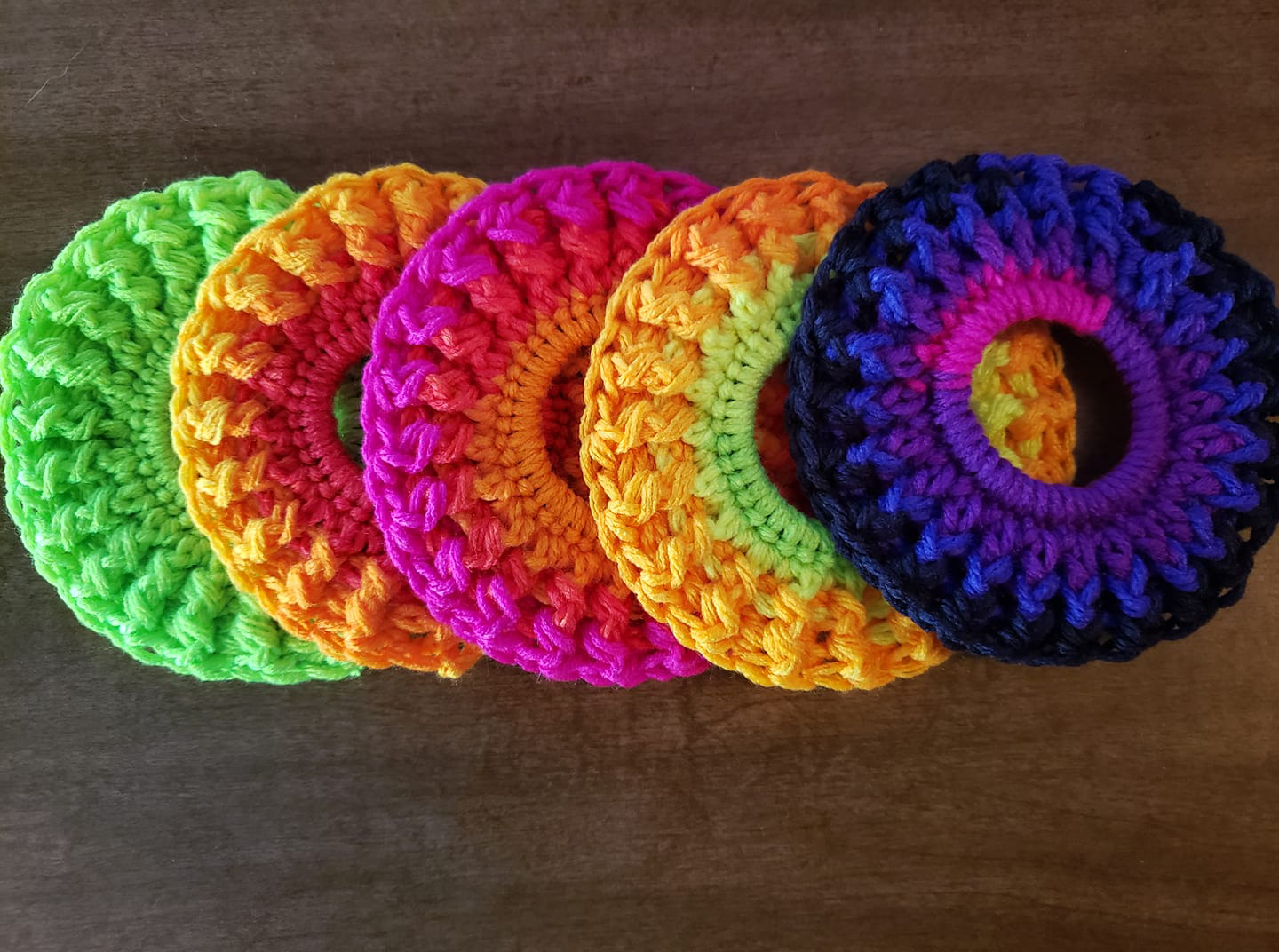 Okay well, having three active teenage daughters they were always going through scrunchies like they were going out of style, and knowing how I am, I’ve always had an ungodly amount of left over yarn from other finished projects.